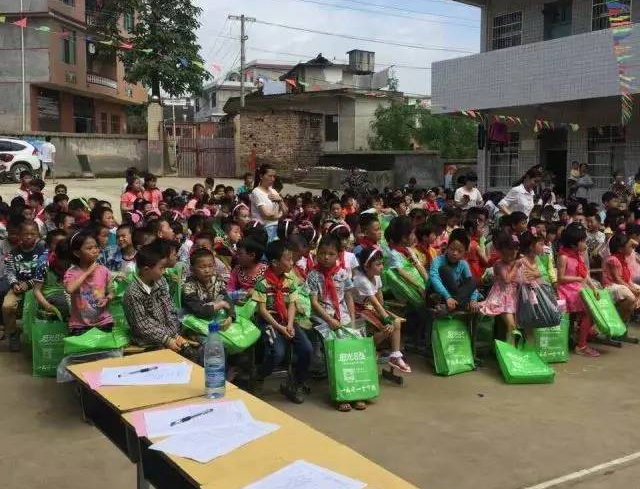 5.31日,新邵縣教育局、愛心企業湖南省陽光箱包有限公司主要領導,為幫助邊遠山區學校改善教學條件,為貧困學生解決必需的學習用品,幫助貧困學生樹立正確的人生觀,增強戰勝困難的信心和決心,由新邵縣教育局學生資助管理中心出資15000元,資助貧困學生30人,每人500元,另捐贈給學校價值10000元的教學用臺式電腦2臺、激光打印機1臺;由愛心企業湖南省陽光箱包有限公司旗下湖南省著名品牌“陽光8點”捐獻價值 28000元的小學一至三年級學生書包268個。