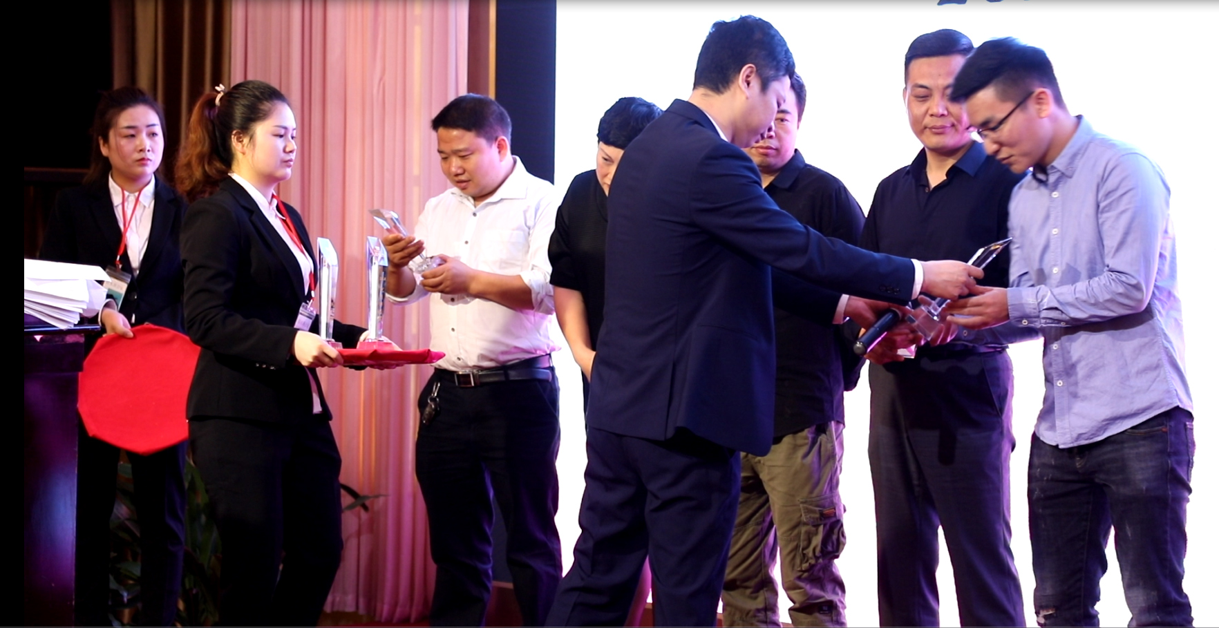 董事長袁仕偉先生給2018年度銷售冠軍頒發獎杯及獎狀