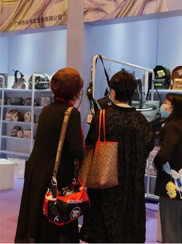 展位現場氣氛熱烈而活躍,第十四屆世界旅游文化小姐中國總決賽的各位佳麗也對我們的產品產生了濃厚的興趣,紛紛上前挑選自己心儀的包包,并上身展示,為展位增添了一抹亮麗的色彩。