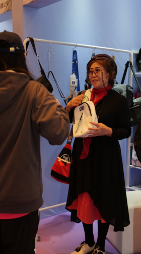 隨著活動的進行,越來越多的行業人士和時尚愛好者聚集在陽光8點的展位前交流和討論。袁總也親臨展位現場,熱情地向參觀者全方位展示公司旗下六個品牌產品,介紹每一款產品的材質特點,懸浮減重、26°追背護脊、防丟失設計、環保過檢面料等等,讓參觀者親手感受產品的質感和實用性,進一步加深品牌與消費者之間的聯系,從而更加直觀地向公眾傳遞品牌理念,也與同行進行深度交流,圍繞‘創新·融合·未來’的主旋律,探討時尚與科技的融合,共同探討行業的未來發展,積極促進國際交流合作,拓展商業合作機會,推動花都時尚產業高質量發展。