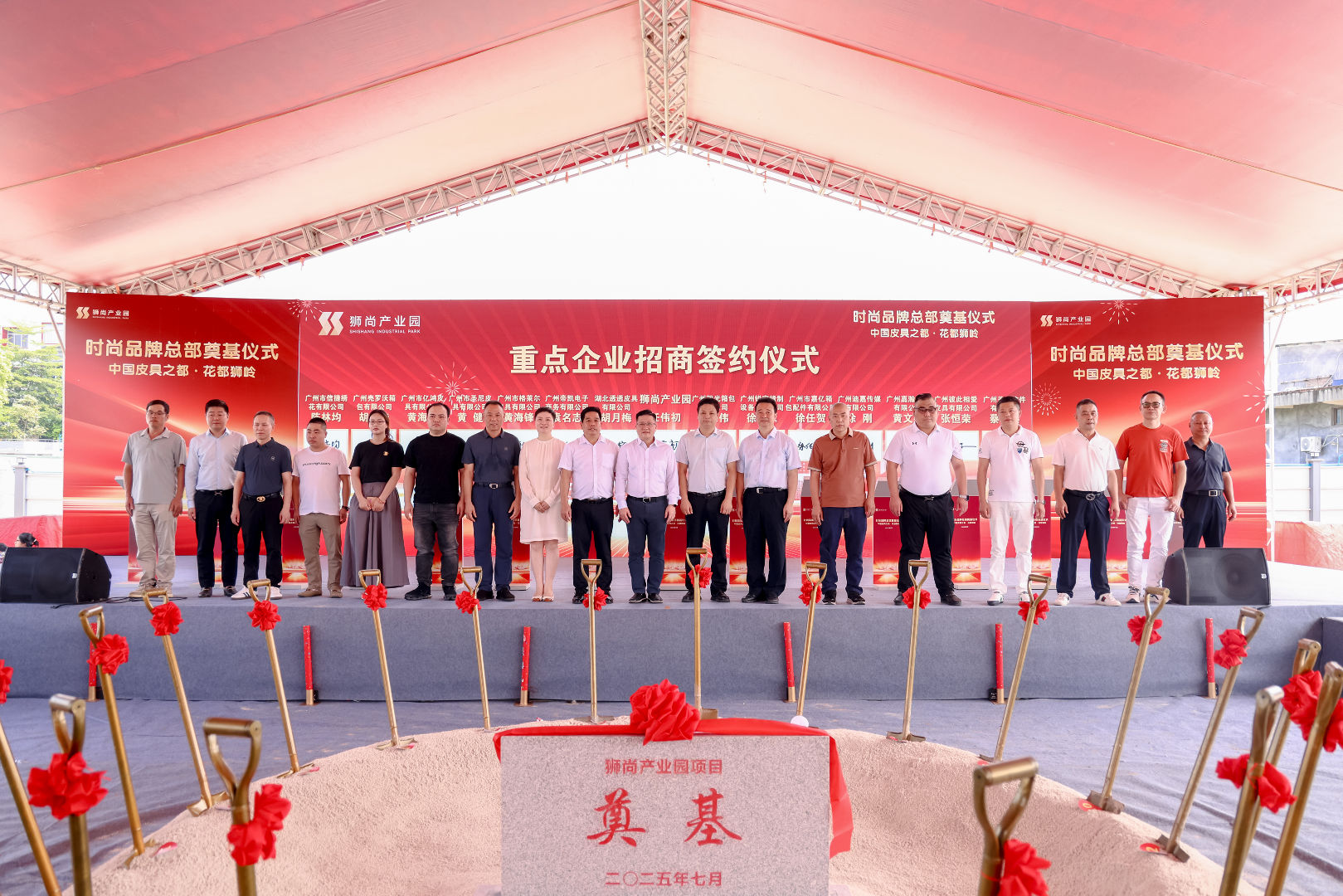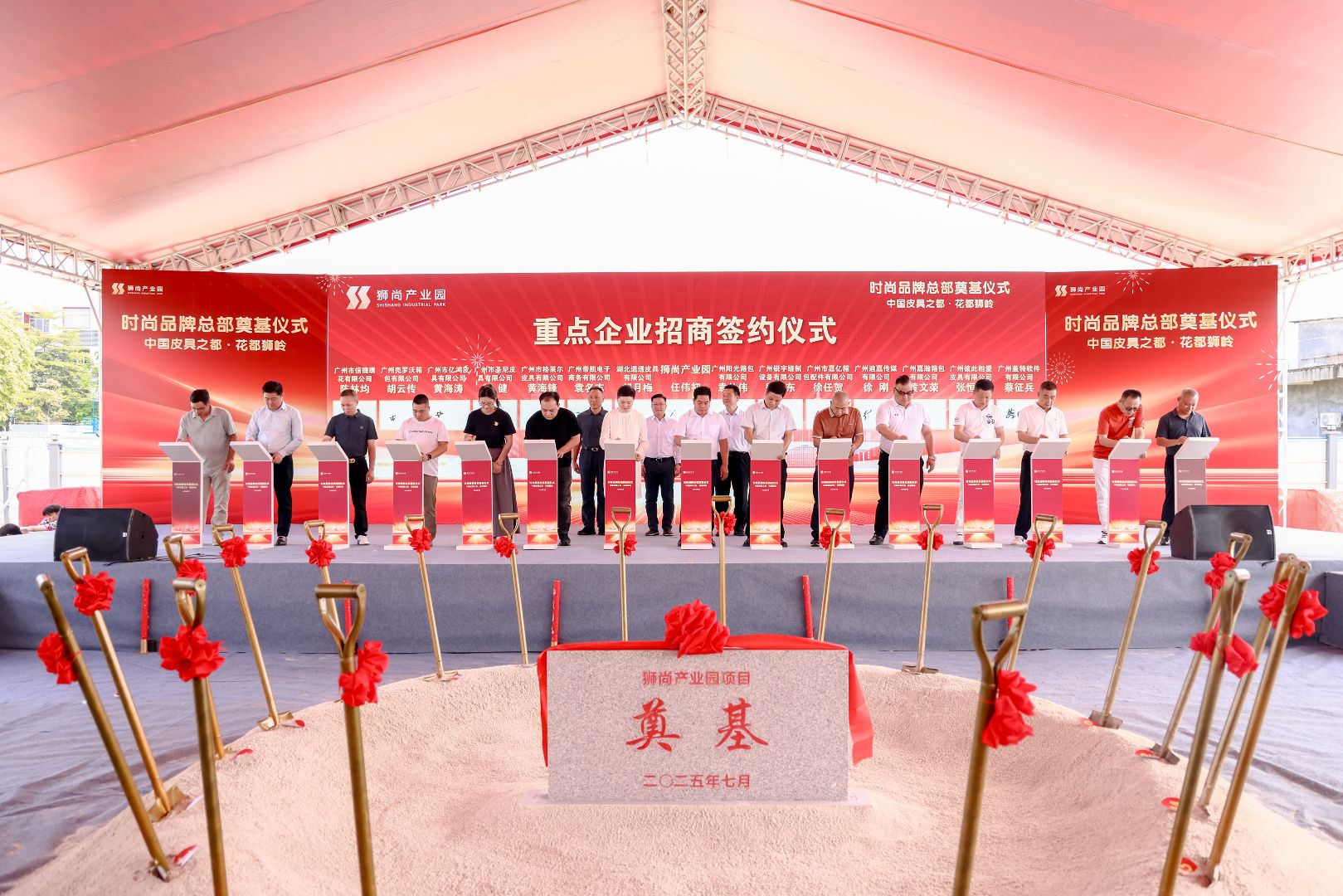上午 10 點(diǎn),花都區(qū)蔡啟良副區(qū)長、獅嶺鎮(zhèn)陳木鑫鎮(zhèn)長及皮革皮具商會宋會長、任會長、相關(guān)職能部門、企業(yè)領(lǐng)導(dǎo)嘉賓齊聚一堂,陽光8點(diǎn)袁仕偉董事長與各位來賓一同見證獅尚產(chǎn)業(yè)園時(shí)尚品牌總部奠基儀式的盛大開啟,現(xiàn)場彩旗飄揚(yáng)、鼓樂齊鳴、熱鬧非凡。