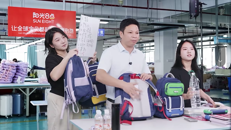 直播中,袁班長努力地介紹著產(chǎn)品,額前的碎發(fā)被汗水浸得貼在皮膚上,卻沒顧上擦一把——他手里攥著護脊書包的肩帶,反復(fù)演示著“如何調(diào)節(jié)長度貼合孩子脊背”,連書包側(cè)袋能裝下保溫杯、反光條在夜晚能護安全這些小細(xì)節(jié),都掰開揉碎了講。仿佛要把每一份用心都通過鏡頭傳遞給屏幕前的人,讓每一次下單都變成奔向孩子的“助力”。
