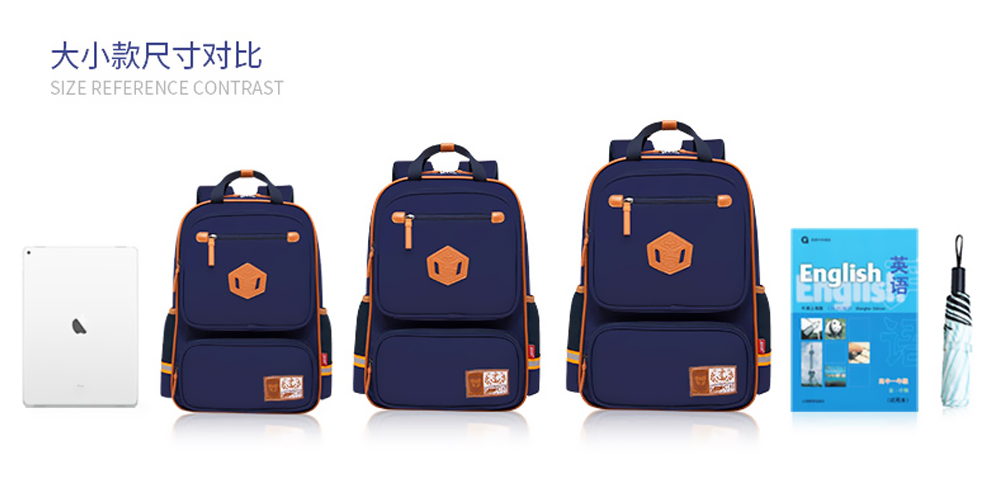 書包都標有一個容量大小,一般可分為學前、新生級,低年級,高年級要根據實際情況選擇對應的大小,建議書包重要不要超過學生體重的15%